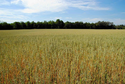 Barley fields are looking ready for harvest too. Neither barley or oats are normally as popular crops in Ontario as wheat, which usually brings a better return, but around here barley seems to be very popular this year. It's used largely as livestock feed, but some of course is used in brewing! Canada actually ranks higher as a barley producer than as a wheat producer internationally, ranking #2 in 2006.