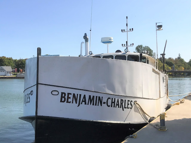 The stern has been draped shut to close it in. I was able to find an online reference to the Benjamin-Charles, and it is a fishing tug, originally from Lake Erie.