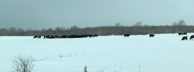 The apple farm is of course closed up down another year.But almost across the road, on another flat field of sandy soils left behind by glacial Lake Algonquin, a new large orchard is going in. They've put in all the support posts in an incredible geometric pattern. I have no idea how they got all the lines so straight! We presume that they will be coming along to plant seedlings this spring and we'll be watching.