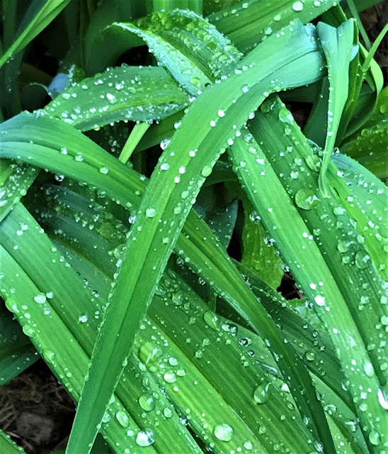 The water droplets liked the emerging leaves of the Day Lilies too.