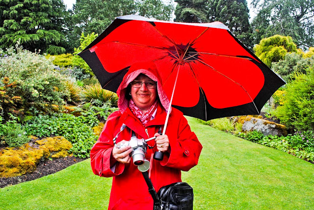 The rock garden is something else to see, rolling knolls and small valleys now covered in a collection of mature shrubs and flowers.  It was drizzling the day we visited, that constant Scottish smirr that left this garden looking a thousand shades of green rather than colourful.